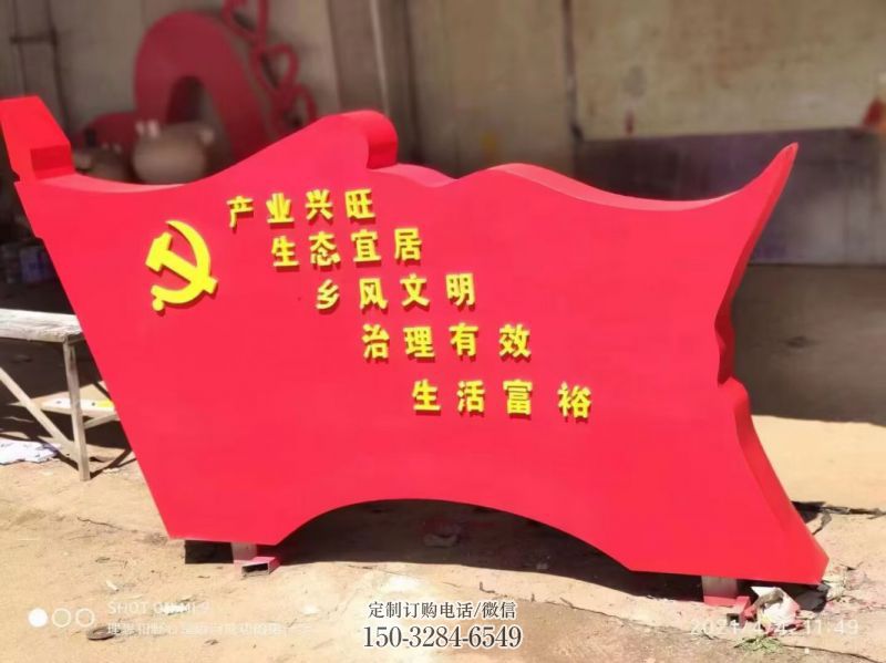 以党旗雕塑的形式来纪念人与事。纪念性景观党旗雕塑最重要的特点是它在环境景观中处于中心或主导位置,起到控制和统帅全部环境的作用。是和当时的经济,文化,宗教,军事,人民的追求分不开的。同时在不同的时代里,艺术的演变与成就也是不一样的。